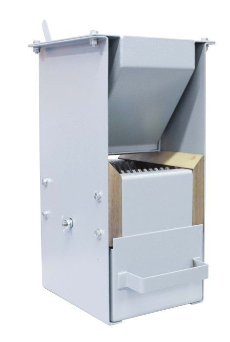 The riffle is designed for loose sample splitting into two components equal by mass and by content.
